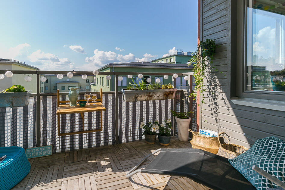 Ni kommer in lägenheten och möts i entrén av snyggt gråsvart klinkergolv, dubbelgarderob samt hatthylla. Direkt till vänster ligger den rymliga klädkammaren. Valnötsparketten bryter av mot klinkergolvet och leder vidare i hela lägenheten.