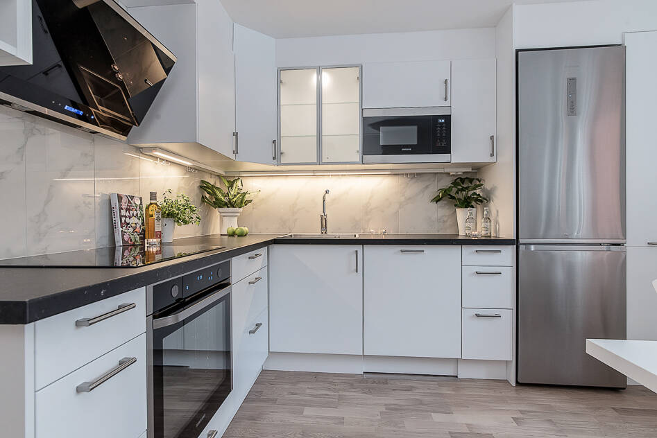 Föreningen har bytt alla lägenhetsdörrar till nya säkerhetsdörrar.