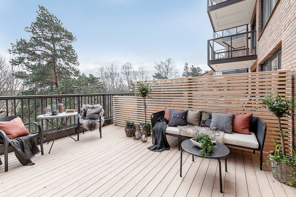 På terrassen är det trätrall och träspaljé skiljer av mot grannarna.