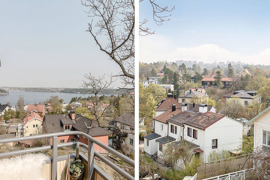 Mälarhöjdens centrum och kyrka syns från vardagsrum och sovrum