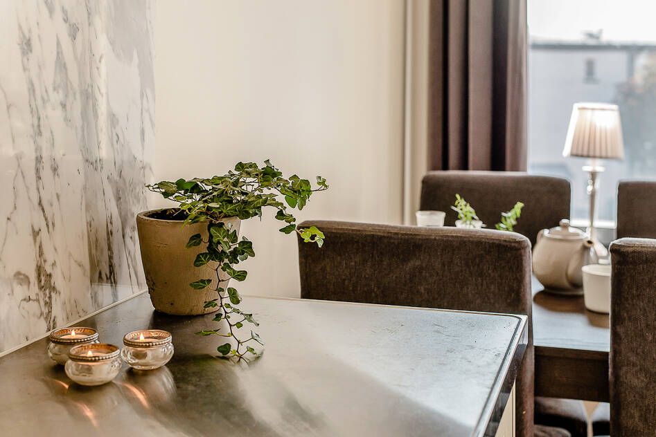 Fastigheten värms upp med hjälp av bergvärme samt komplettering av fjärrvärme.