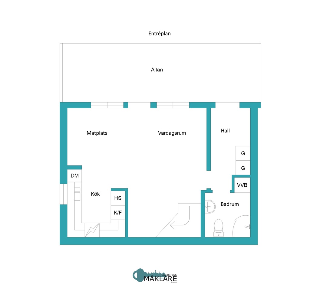 Väl inne möts man av en hall med plats för avhängning på väggen till vänster och här finns även en garderober. Bägge våningsplan har ekparkett som lades in 2019 och på det nedre planet är det eluppvärmning under golvet förutom i köksdelen.