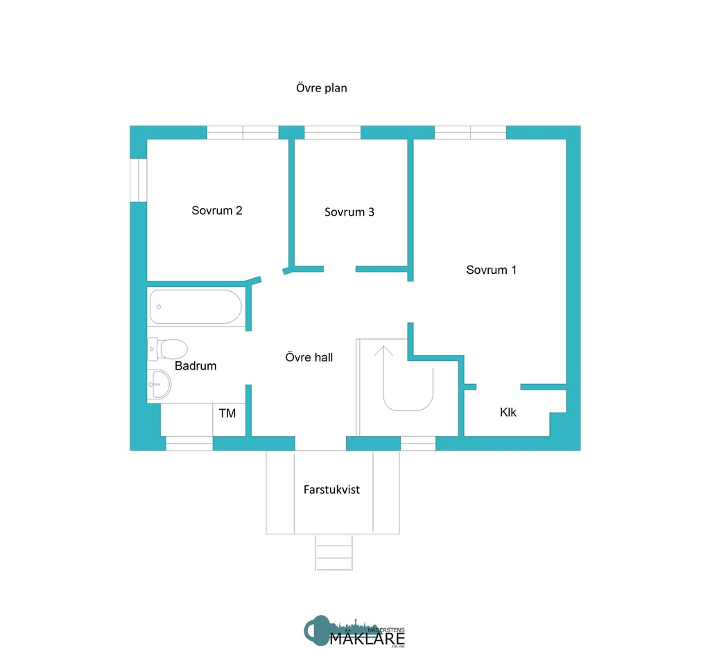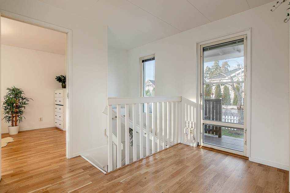 Även detta våningsplan har ett nyare ekparkett golv. Det övre planet har utsprungligen två sovrum men ena sovrummet är avdelat till två rum.