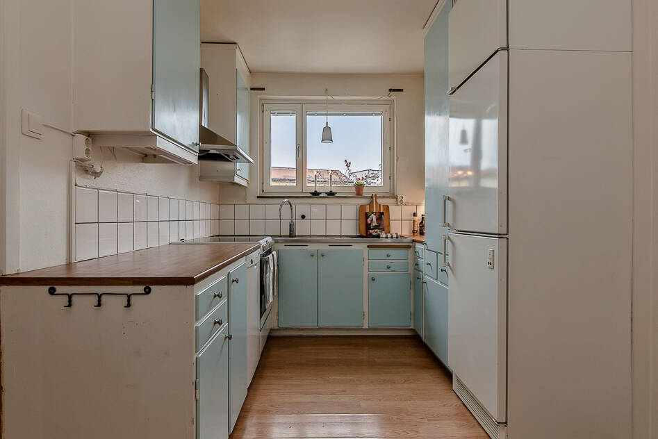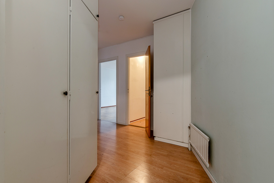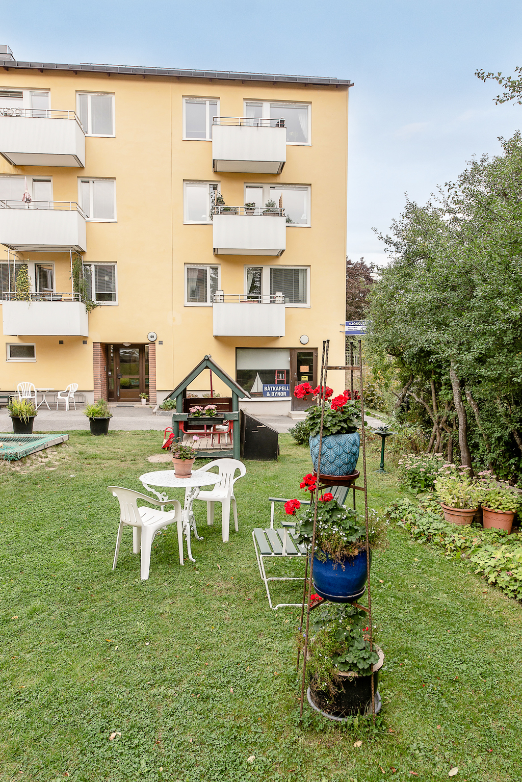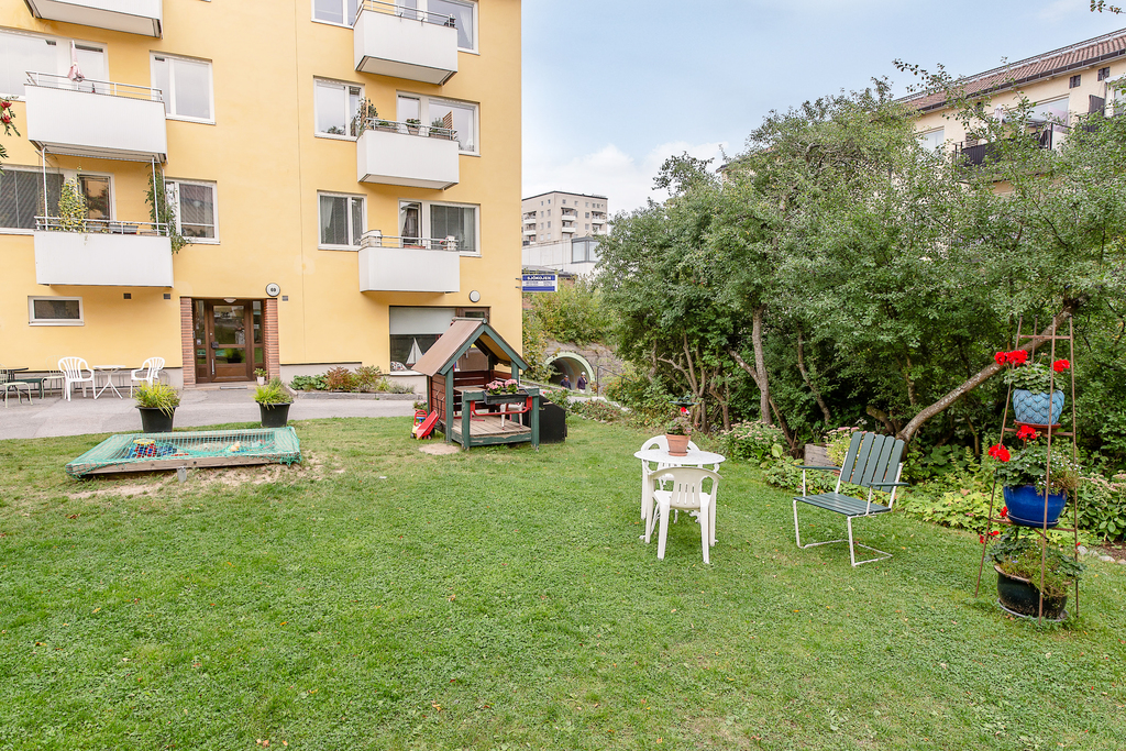 Lägenheten ligger bara någon minuts promenad från tunnelbanans röda linje, Fruängen station och Fruängens Centrum. I Fruängens Centrum finns det mesta man behöver. Här finns bland annat apotek, bibliotek, systembolag, folktandvård, vårdcentral, dygnet-runt-öppet gym, Coop, Hemköp, caféer och restauranger med inspiration från olika hörn av världen. Här finns sushi, thai, pizza, hamburgare och populära "Erssons Fisk & Deli".